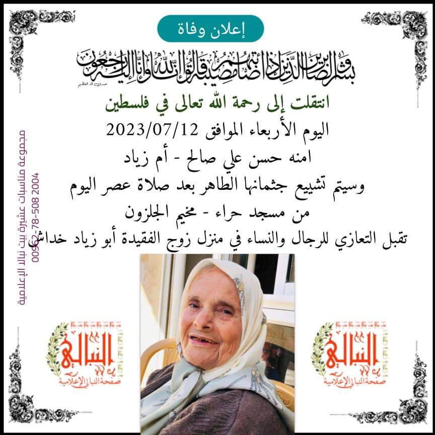 انتقلت إلى رحمة الله تعالى في فلسطين