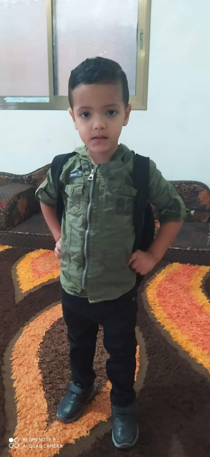 المغفور له بإذن الله تعالى الطفل/ محمد إياد أحمد القرا خمس سنوات إثر حادث سير مؤسف في بلدة خزاعة.